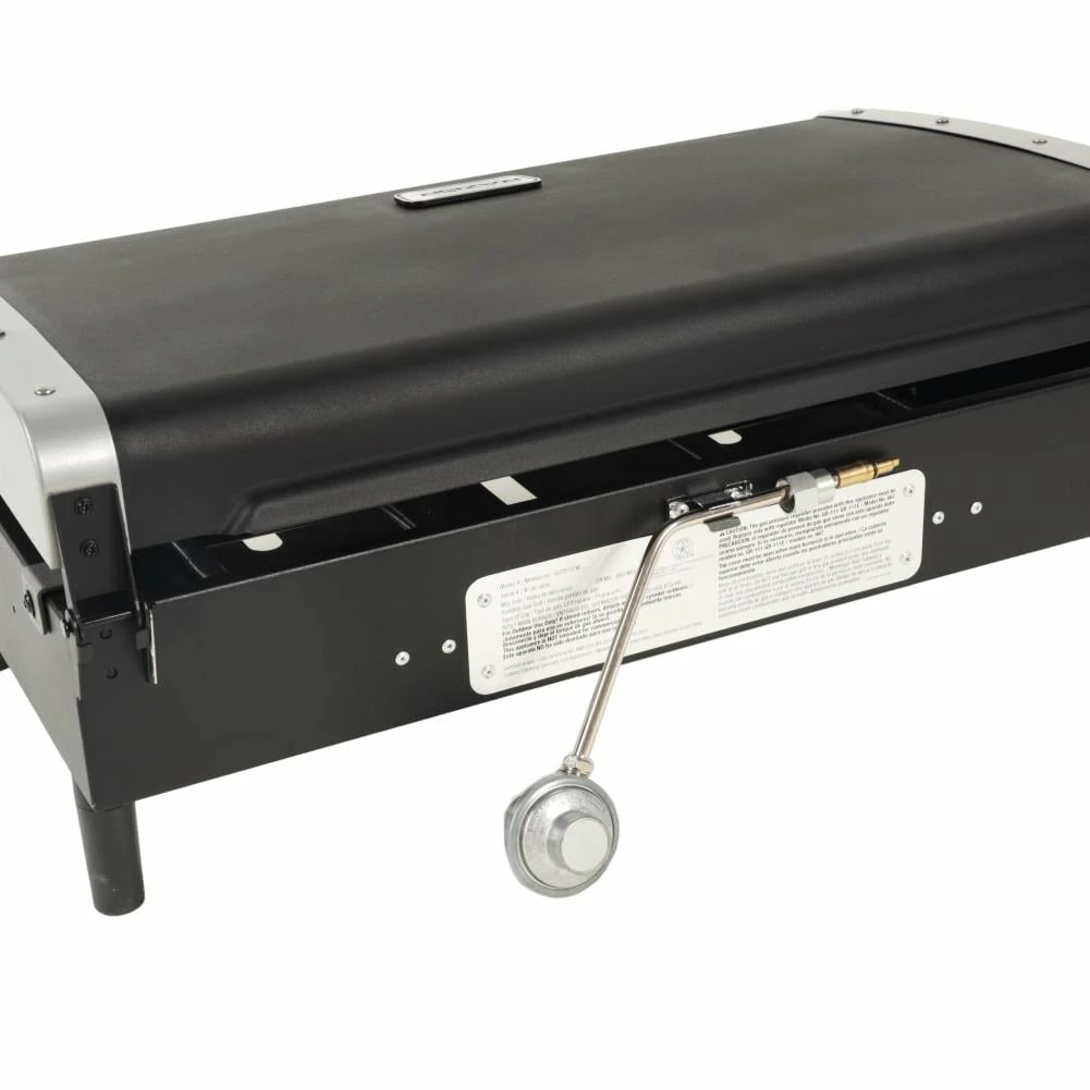 The Blue Rhino® 2 burner portable Razor griddle grill has plenty of room to cook all your favorite foods; perfect for backyard barbecues, camping and tailgating. Outdoor griddle made for BBQ cookout weekends with friends and family all summer long. Cook up to 21 burgers at a time, fry up some eggs, sizzle some bacon or even do stir fry…all with the versatile Razor griddle grill. 2 stainless steel tube burners with 20,000 BTUs with easy push and turn ignition. Large capacity, 318 sq in pre-seasoned griddle. Secure front access drain and cup for easy grease disposal. Versatile surface for cooking breakfast, lunch and dinner. Steel lid protects and shelters your savory meal from unexpected, incoming weather while steaming foods or melting cheeses. Use 1-lb liquid propane cylinder (not included).
