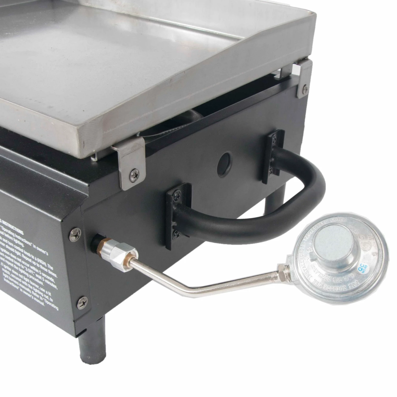 - Thick rolled-steel pre-seasoned cooking griddle top