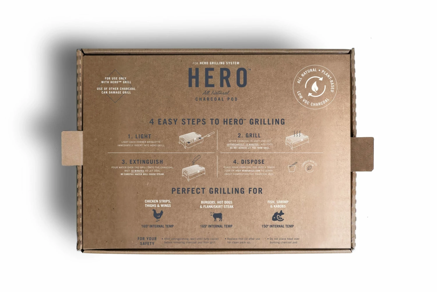 - Hero charcoal pods are a safe, portable charcoal option for grilling great food with friends and family