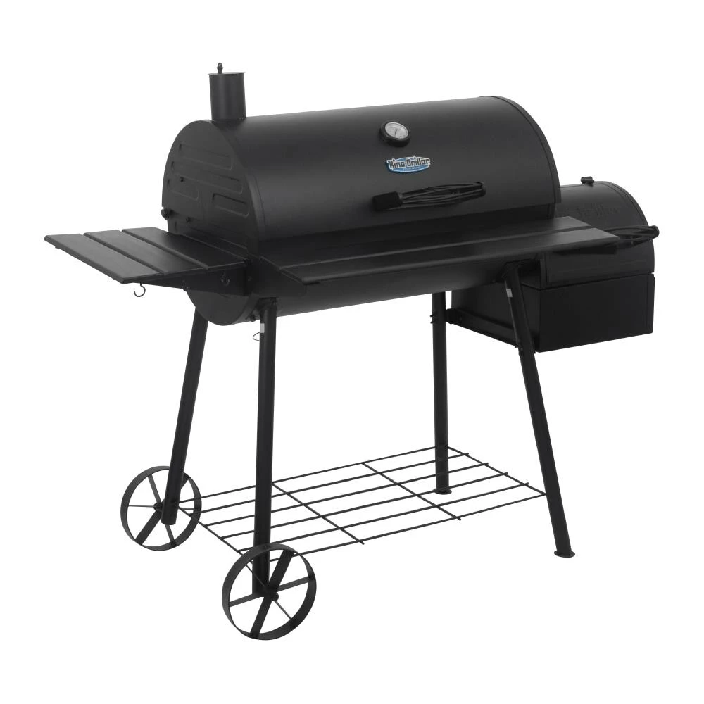 The King-Griller™ (by Char-Griller®) Smokin’ Ace™ Charcoal Grill provides the versatility valued by barbecue pros and backyard enthusiasts, at a family friendly cost. It features a large grilling area with cast iron cooking grates and a warming rack. The built-in temperature gauge and adjustable fire grates provide added temperature control. The included side firebox is equipped with an easy to clean ash drawer. Manufactured with durable steel ensures this grill will last for years.