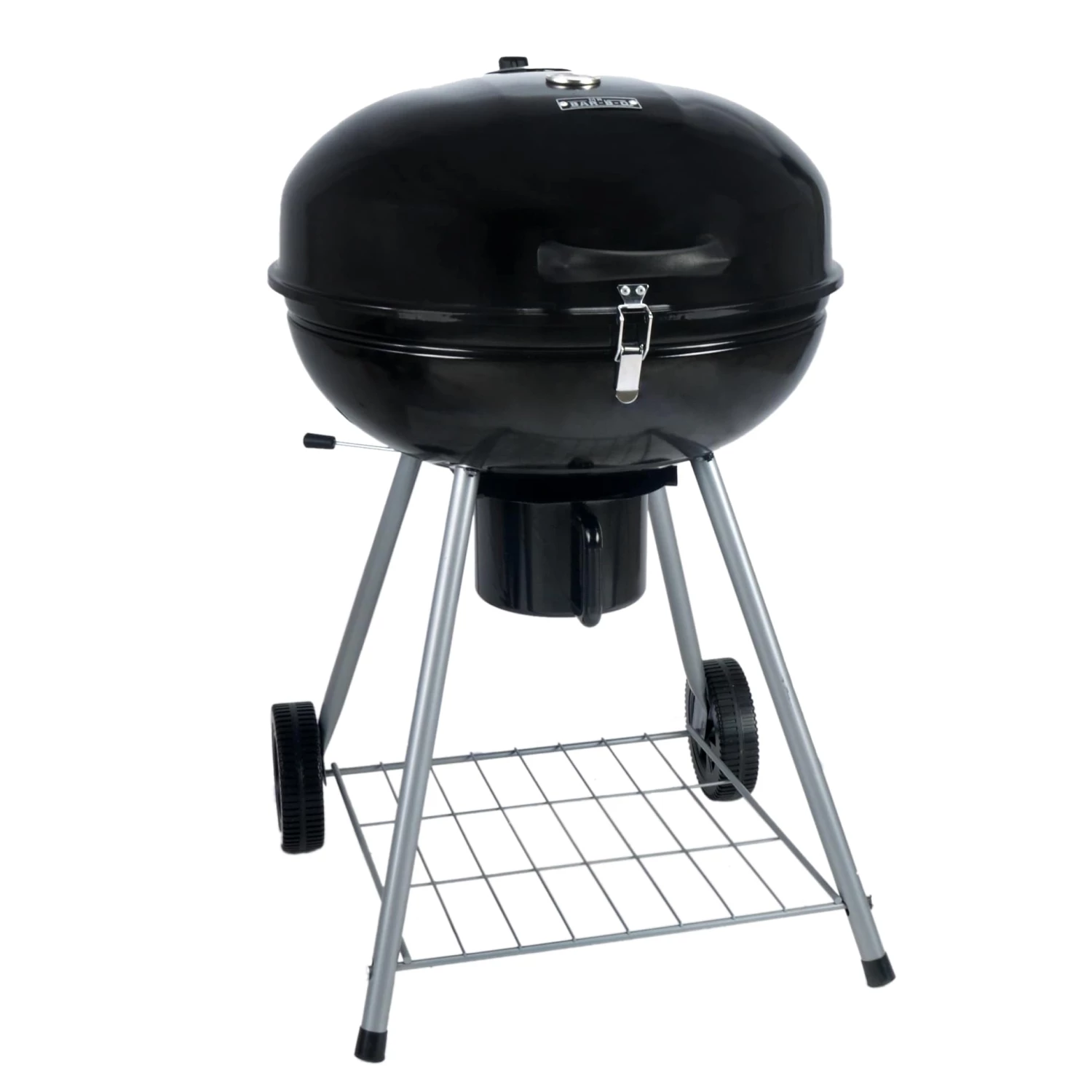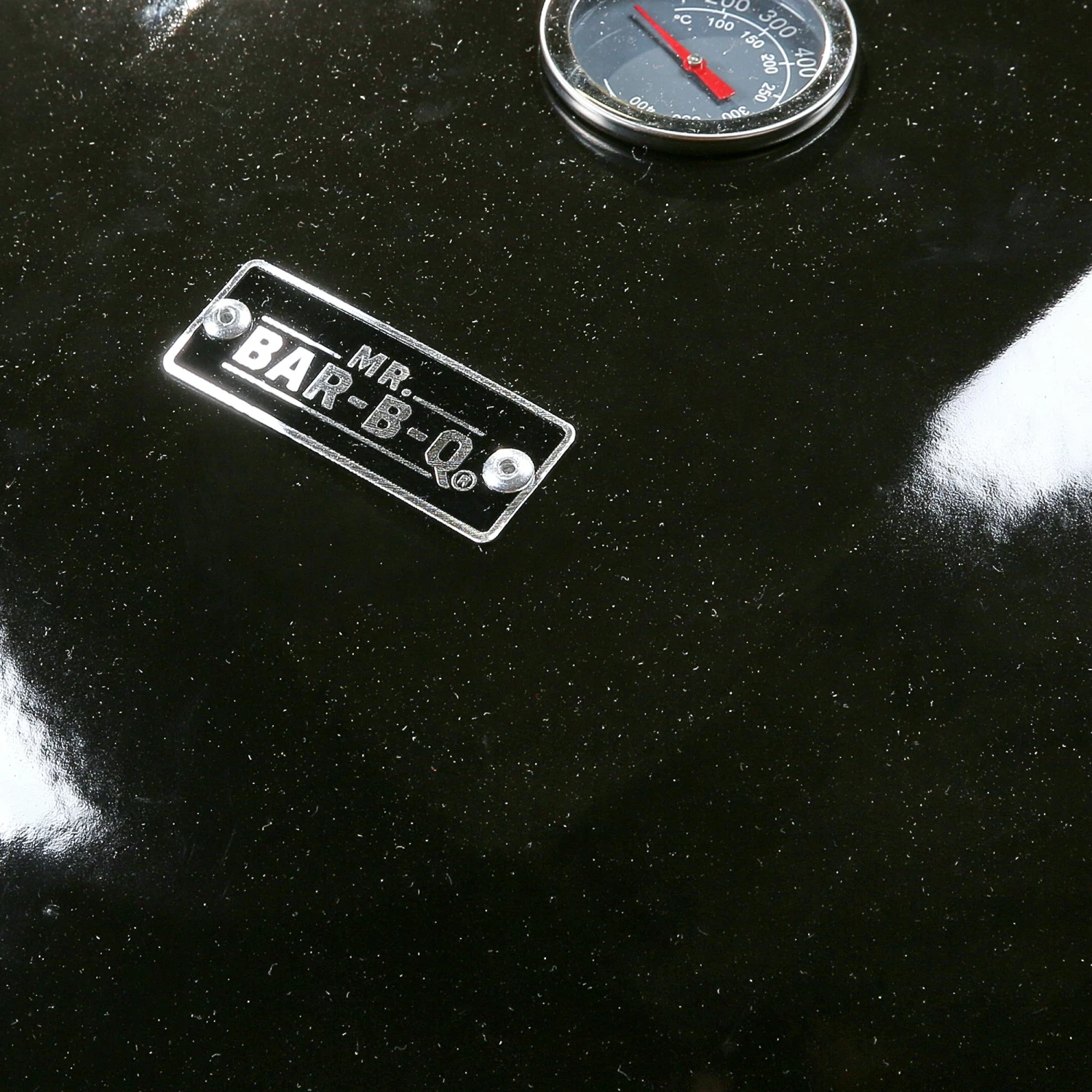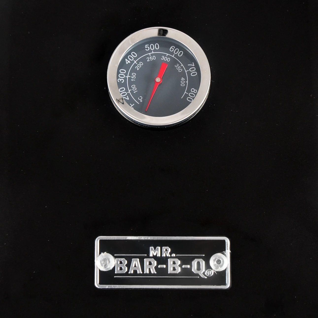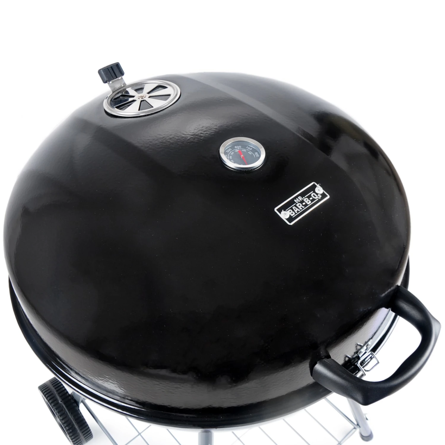 The Mr. Bar-B-Q 22-in charcoal grill has a total of 540-sq in cooking area, cook up to 27 burgers at a time. Built in temperature gauge and adjustable air vents for temperature control. Bottom storage shelf offer extra space. The wheels make transporting easy for your next event.