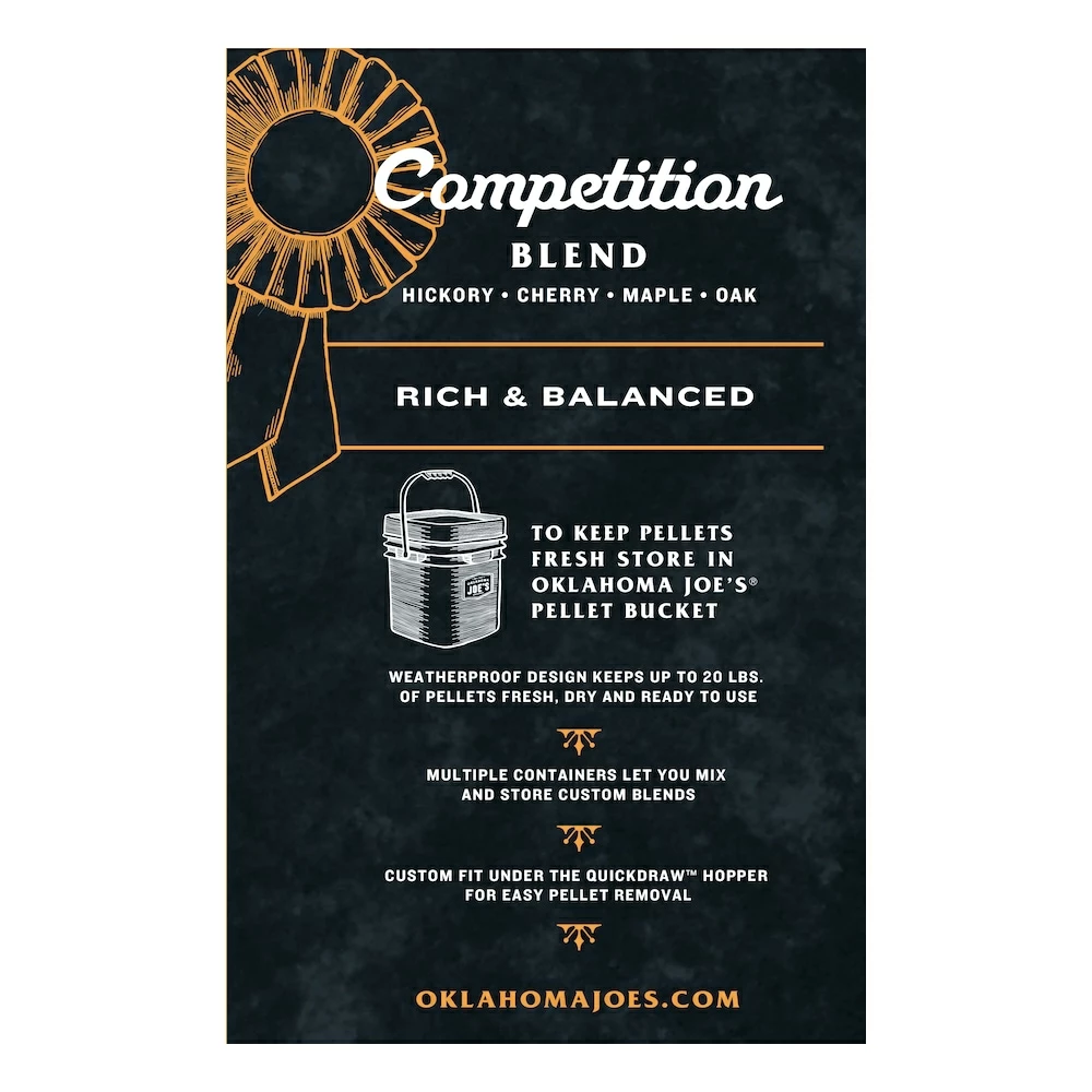 Infuse your beef, chicken, pork, fruit and vegetables with the sweet and smoky flavor of Oklahoma Joe’s® Competition Blend Wood Pellets. These ultra-premium pellets are 100% natural, hardwood, food-grade pellets. They’re clean burning with low ash for easy clean-up and available in 20-pound bags.