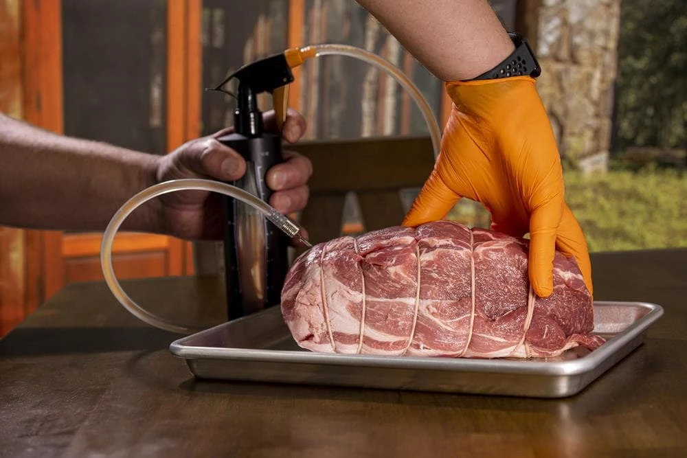 - Injector nozzle to inject your meat with marinade