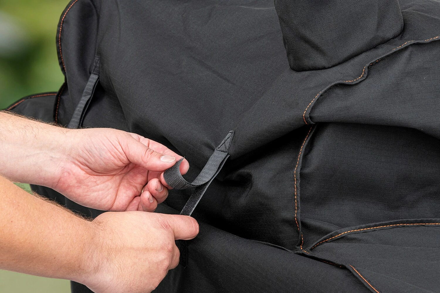 Protect your Oklahoma Joe’s Rider 900 or Rider DLX Pellet Grill from the elements with a custom-fit cover. Made from fade and water-resistant material, this heavy-duty cover keeps your pellet grill clean and dry. Plus, built-in hook and loop straps ensure a secure fit.
