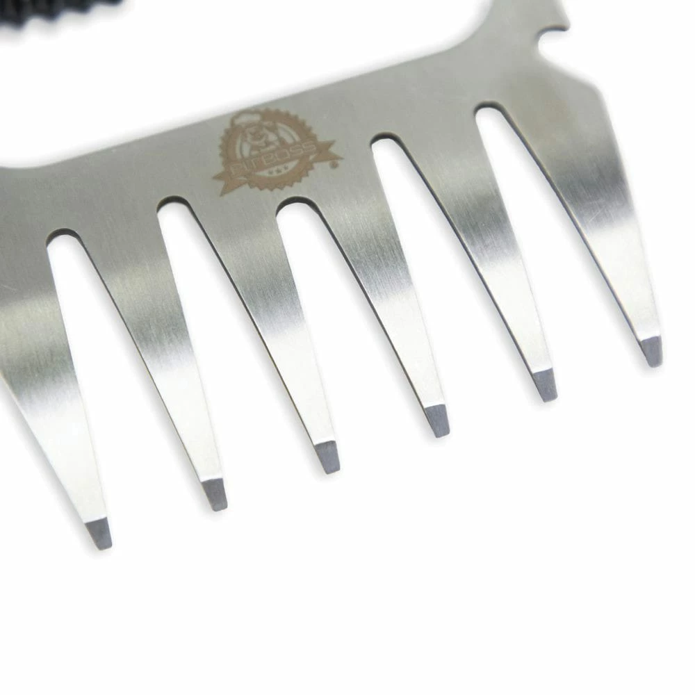 Experience expert gripping, pulling, lifting, and shredding with the pro series meat claws from Pit Boss. The heavy-duty stainless-steel claws allow you to lift everything from juicy whole turkeys to tender pork butts. With their ultra-sharp blades, you can quickly pull apart or shred meats with the ease of a professional pit master. The handle of the pro series meat claws is made from durable, long-lasting nylon material. They proudly feature an extra-wide design that’s comfortable to hold and fits various sized, small and large grips while the built-in bottle opener on each claw adds even more convenient and functional use.