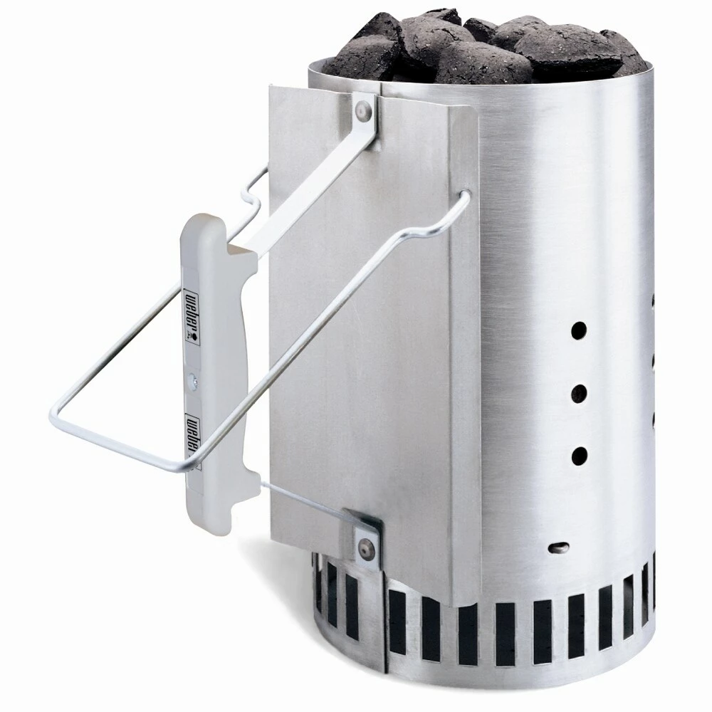 Get your charcoal glowing and ready to go in just minutes with the Weber Rapidfire Chimney Charcoal Starter. Tackle high-volume cooking with the extra-large capacity bin. It’s made from aluminized steel.