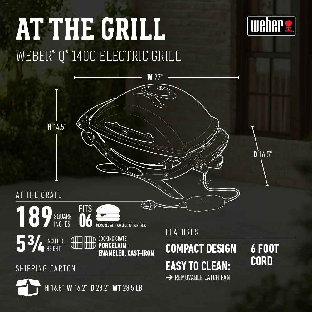 - Weber Q 1400 electric grill with 1560 watts – 120 volts